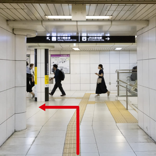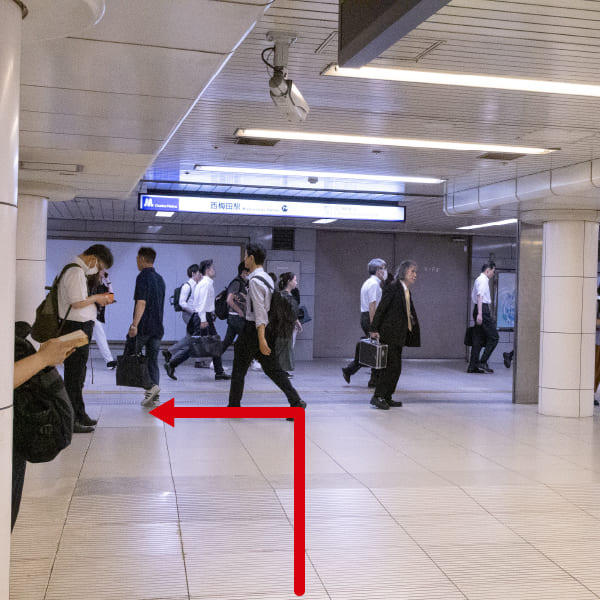①「JR北新地駅」「地下鉄西梅田駅」方面の出口へ向かってください。