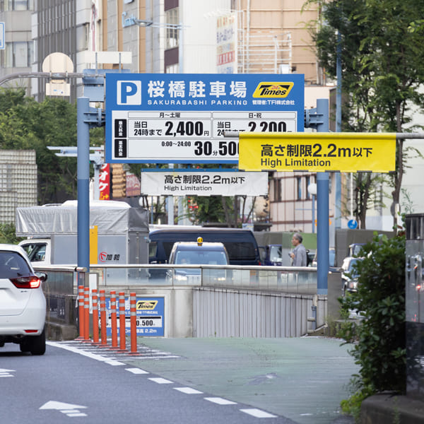 桜橋駐車場から地下道を通って直接店舗へ行けるので、雨の日も濡れずに快適です。