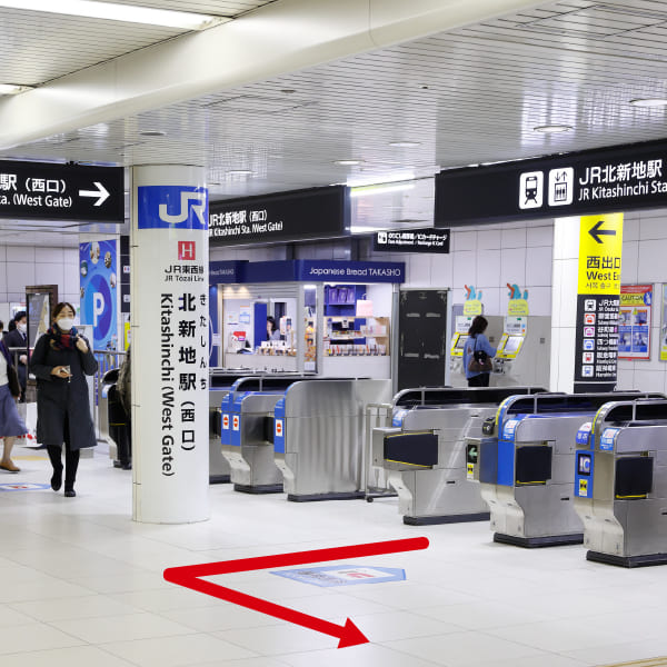①北新地駅 西改札を出て、左に進みます。