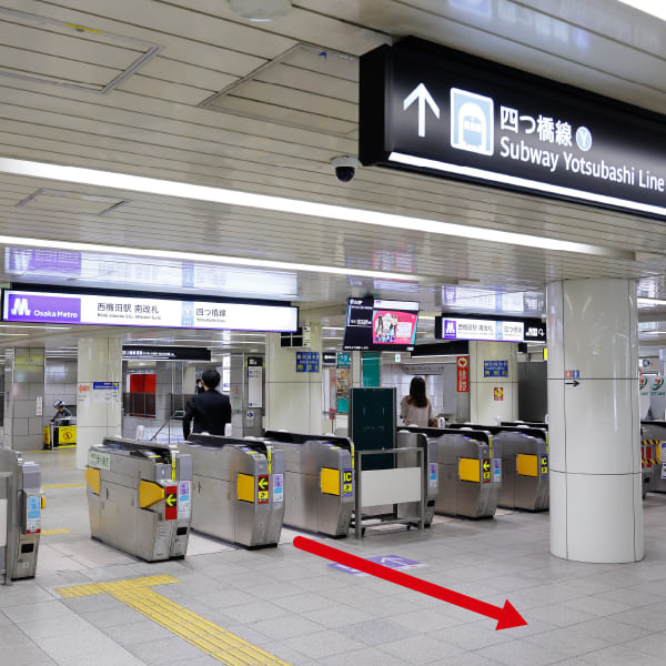 ⑦ 「地下鉄(四つ橋線)」改札の左側通路を直進します。