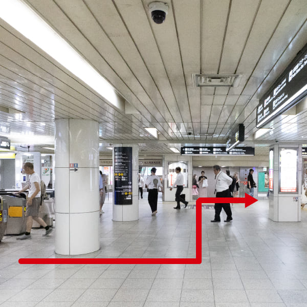 ②西梅田駅改札手前を左に曲がります。