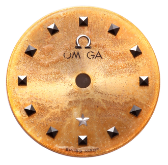 オメガの文字盤です。全面にひどい錆び、変色がありましたので元の白色へ再生いたしました。
