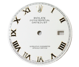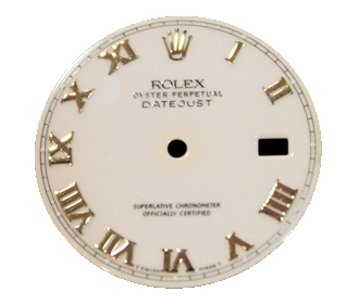 ロレックスの文字盤です。シャンパンゴールドから白に色を塗り替え、インデックスにダイヤを付けました。