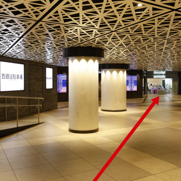 ①出口「A」銀座駅・銀座4丁目方面を出て、銀座駅地下通路を左折。