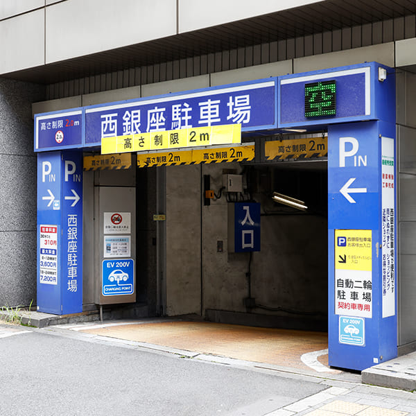 長時間の利用には西銀座駐車場がおススメです。大変広い駐車場ですので、銀座5丁目地下「A」出口付近に駐車すると店舗に近くて便利です。地下通路直結なので雨にも濡れず快適。駐車料金10%OFFになる割引券を店頭でお渡ししています。
