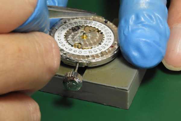 リューズが固く、回してもカレンダーの日付が変わらないとのことでした。