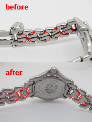 このタイプのタグホイヤーのベルトではよくみられる事例で長くお使い頂く為に、