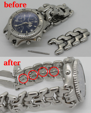 タグホイヤーのこのタイプのベルトは、コマをすべてピンでつないでいるので、