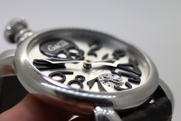 今回の事例はガガミラノ マヌアーレ48mmのオーバーホール、風防ガラス取り付け修理・料金の紹介です。