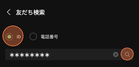 「検索」をタップして「ID」にチェックを入れ時計修理工房LINE IDを検索