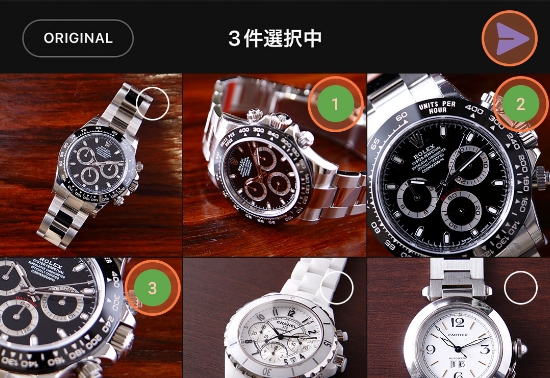 画像一覧で送りたい画像にチェックを入れて「送信」をタップします。