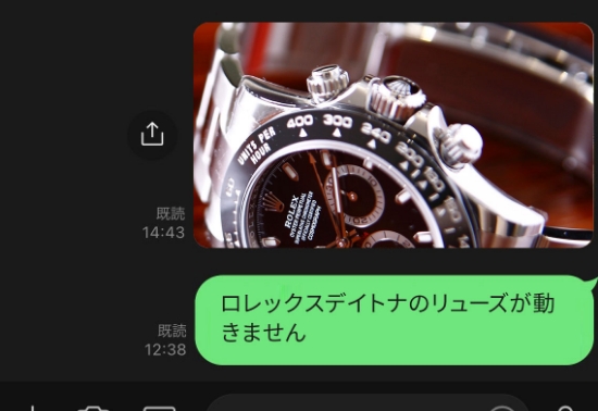 写真に続いて、時計のブランド・シリーズ名と不具合や症状・相談内容についてメッセージをお送りください。