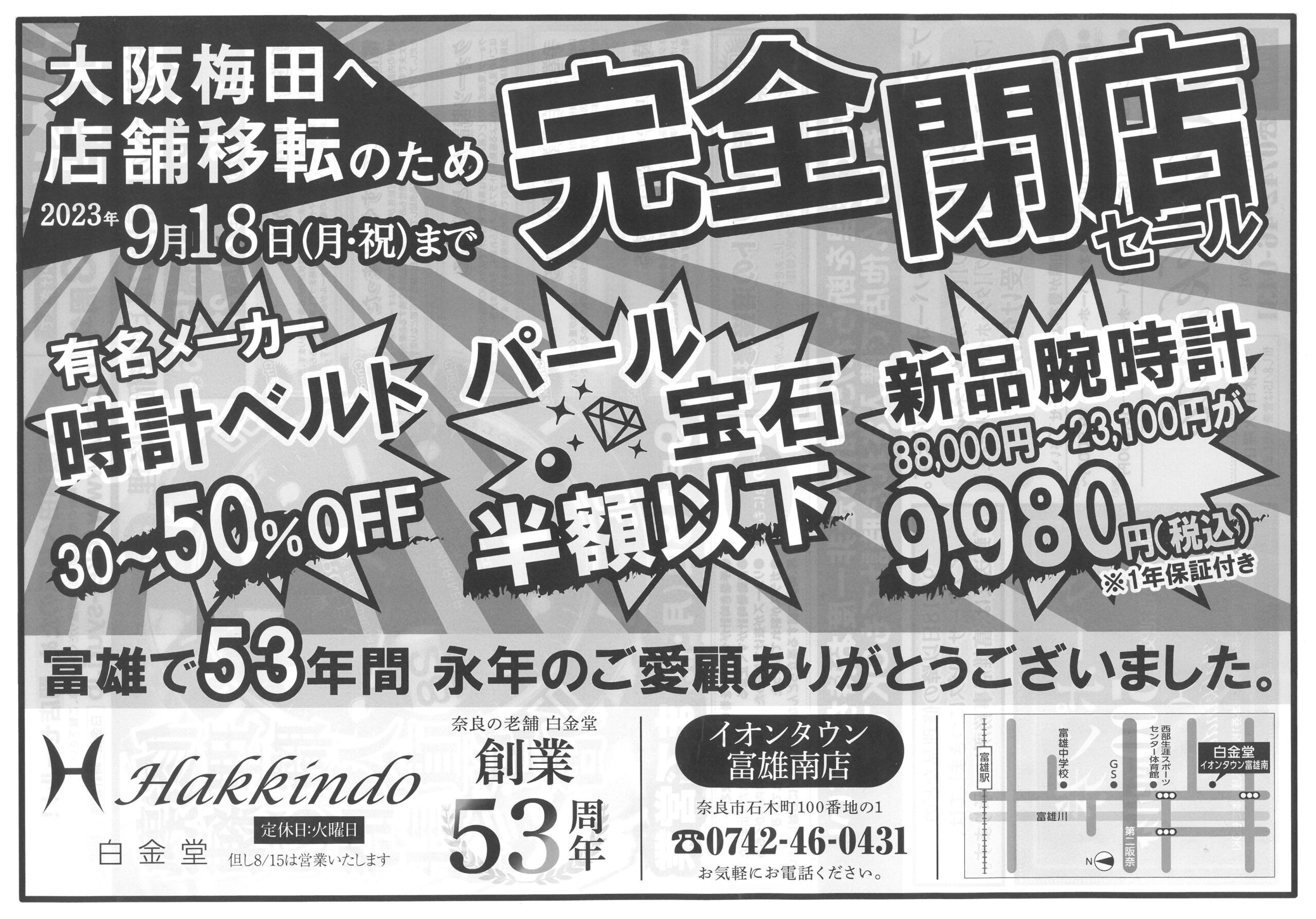 2023年8月11日(祝)~21日(月)まで、「第2弾 完全閉店セール」を開催いたします。