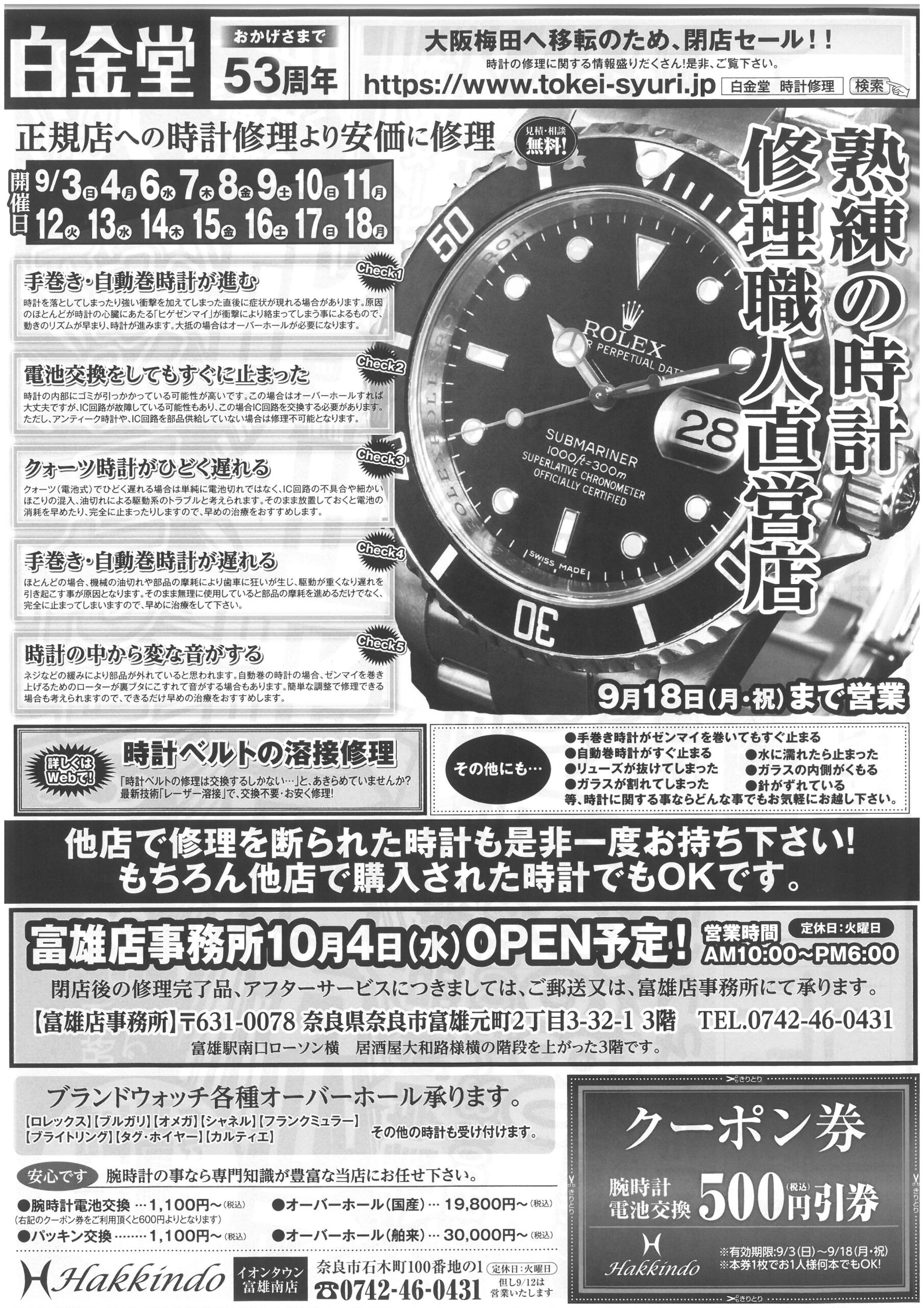 時計修理工房白金堂