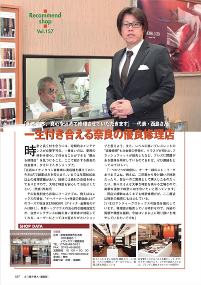当店と当店で販売している時計が紹介されております。