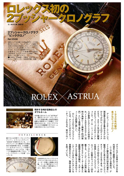 雑誌掲載の ROLEX×ASTRUA 2プッシャークロノグラフ はこちらよりご確認いただけます。