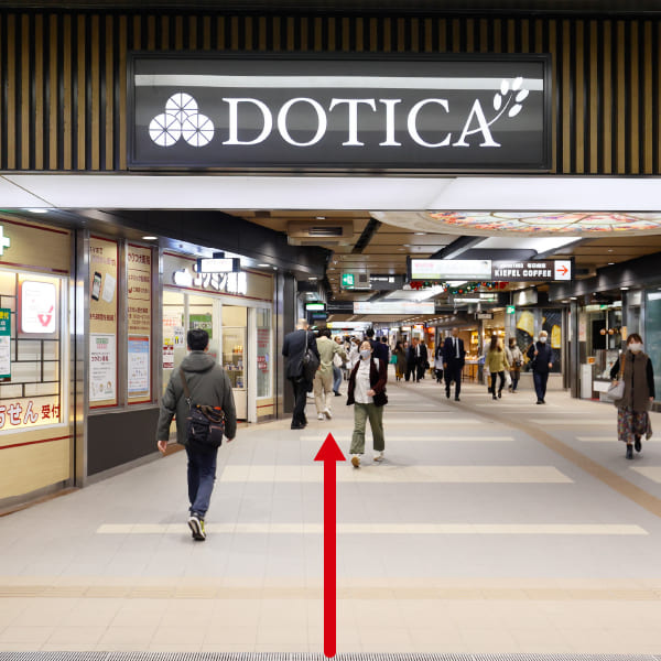 ⑦頭上に「DOTICA」看板のある通路を直進します。