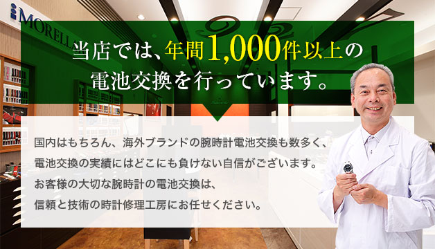 ご安心ください。時計修理工房では、国内はもちろん海外ブランドの時計の電池交換も、数多くの実績がございます。ぜひご相談・ご来店ください。また店内には経験豊富な時計修理職人が常駐していますので、対応の可否などをその場でお答えできます。