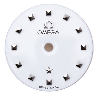 オメガの文字盤です。全面にひどい錆び、変色がありましたので元の白色へ再生いたしました。