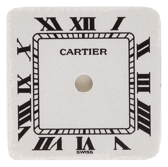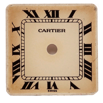 カルティエの文字盤です。焼けによる色褪せ、変色が大きい状態でした。再生にて、元に近い白色へ再生いたしました。