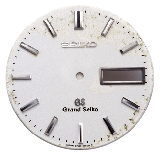 グランドセイコーの文字盤です。ふち周りが傷んでいましたが、再生にて綺麗に復活いたしました。